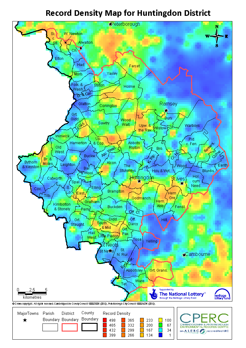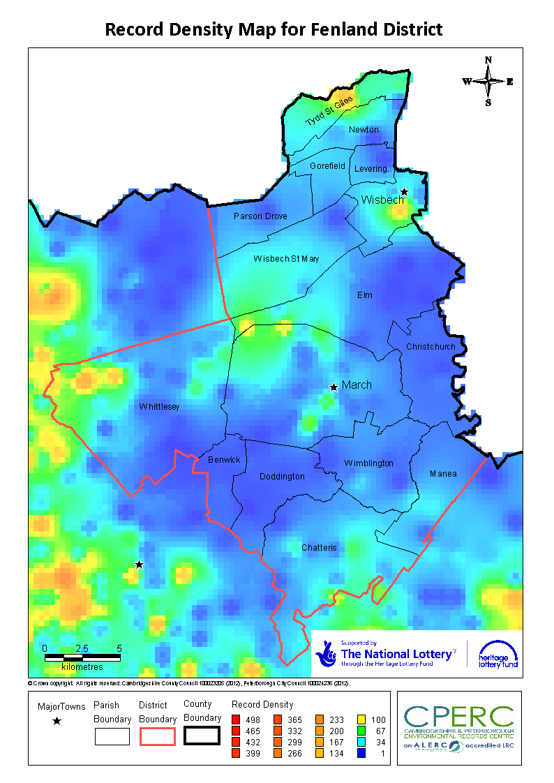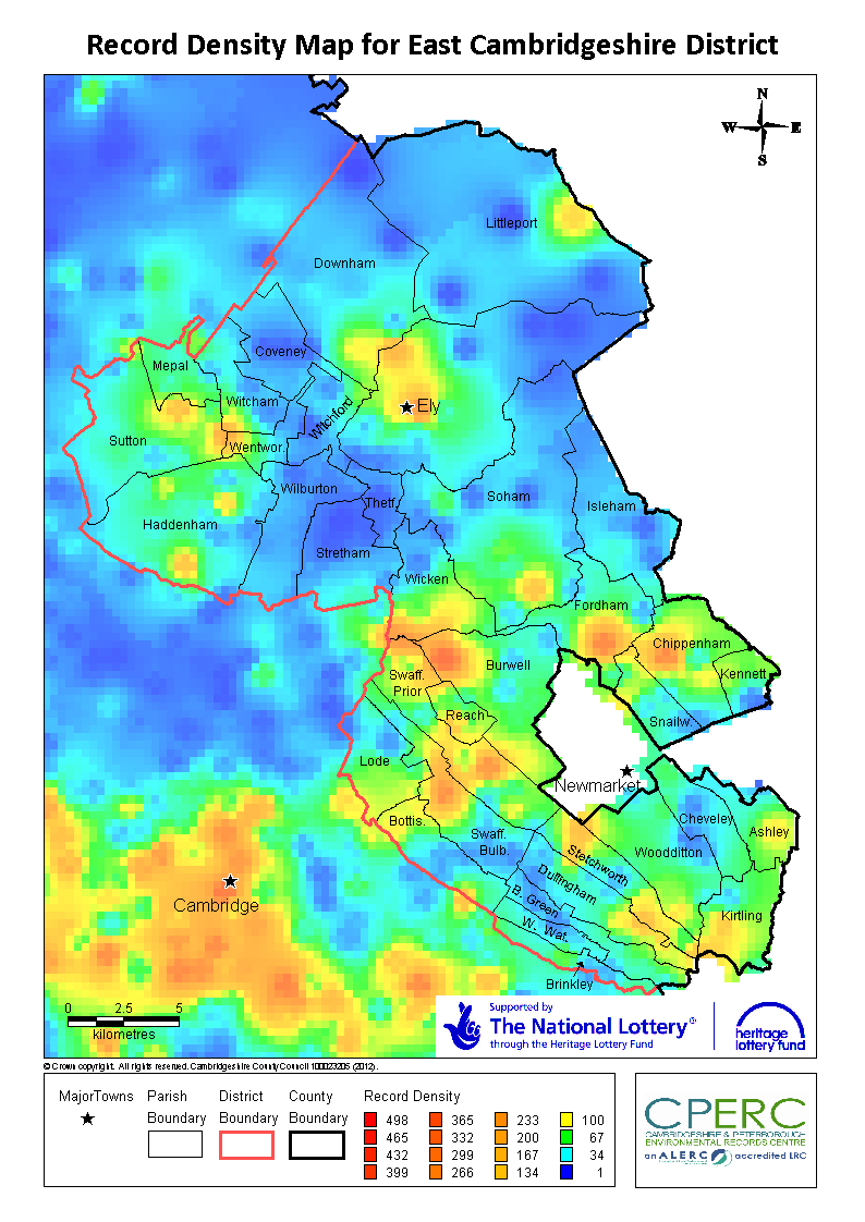 Many recorders and volunteers have helped build up a general picture of Cambridgeshire and Peterborough’s wildlife over the years, however there are still many gaps in this picture. The record density map below shows the number of records that we currently have in our database per square kilometre, for Cambridgeshire and Peterborough.